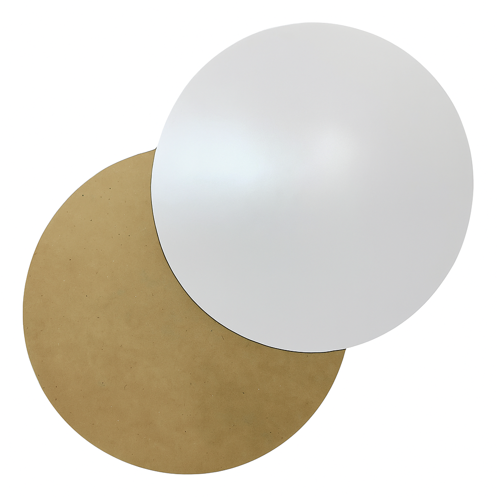 Confeccionado em MDF branco de um lado e cru no outro, com 3mm de espessura para garantir estabilidade.